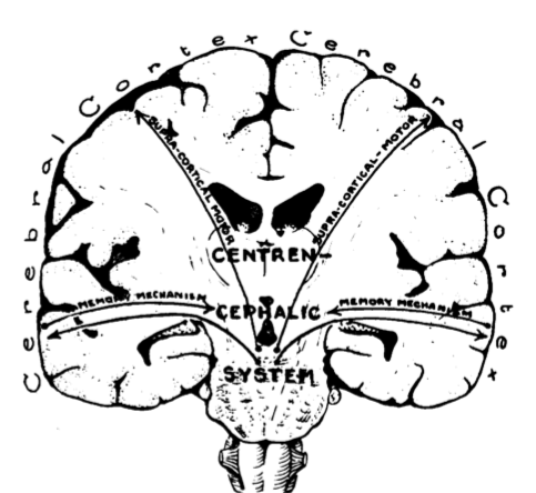 He came up with the concept of a Centrencephalic Integrating System (CIS) in which the centrencephalon, consisting of thalami and higher brain stem, integrates all information from the cortex of both hemispheres. The CIS was considered the substrate of consciousness and mind: Like the motor cortex consults the basal ganglia to improve movement, the frontal cortex consults the basal network in reward detection (a.o. ventral striatum and ventral pallidum), motivation and cognition. Our knowledge of the motor network is greater than our comprehension of human behaviour because the output is easier to measure, not because movement is more important than thoughts or imagination.